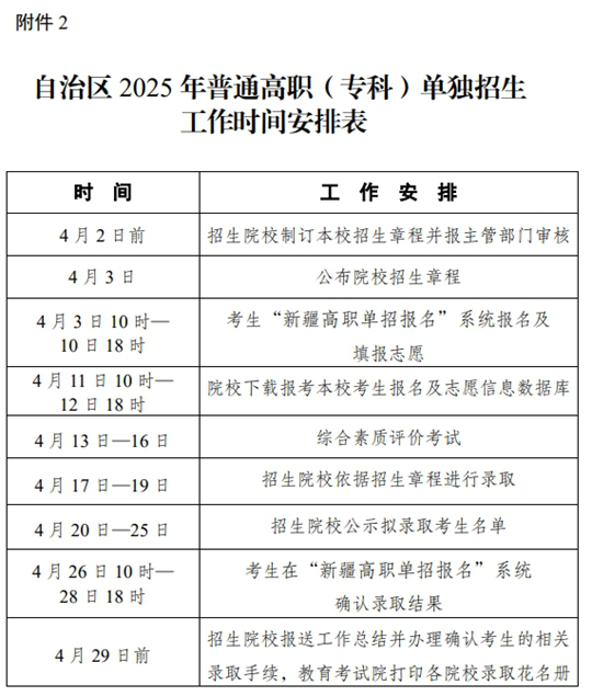 2.自治區2025年普通高職(專科)單獨招生工作時間安排表
