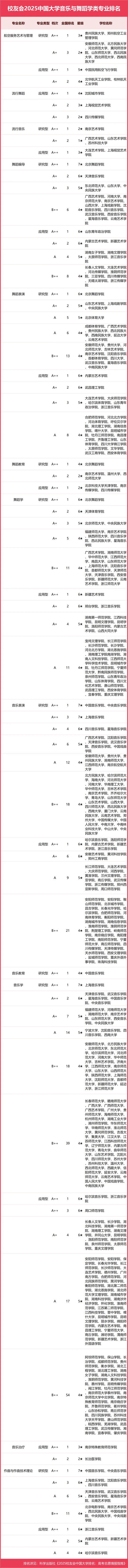 校友會2025中國大學音樂與舞蹈學類專業排名(應用型)