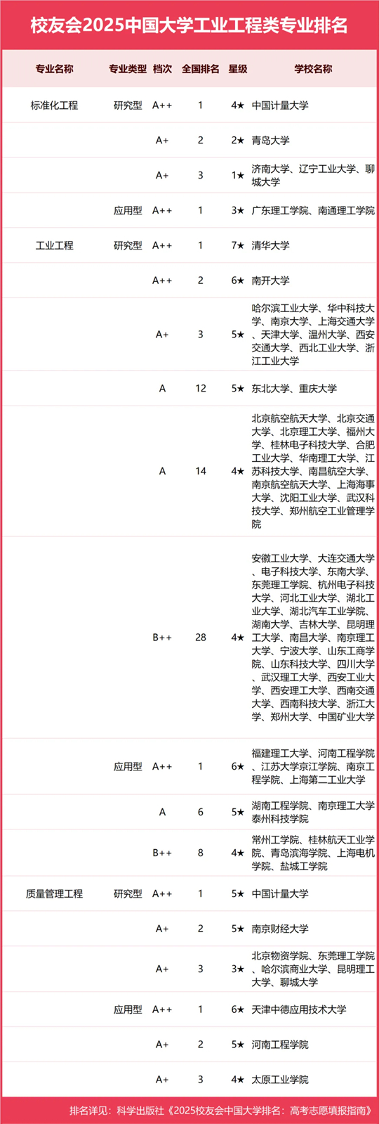 | 校友會2025中國大學工業工程類專業排名,中國計量大學、河南工程學院第一 |