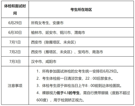 1.所有參加面試體檢的女考生統一安排在6月29日。