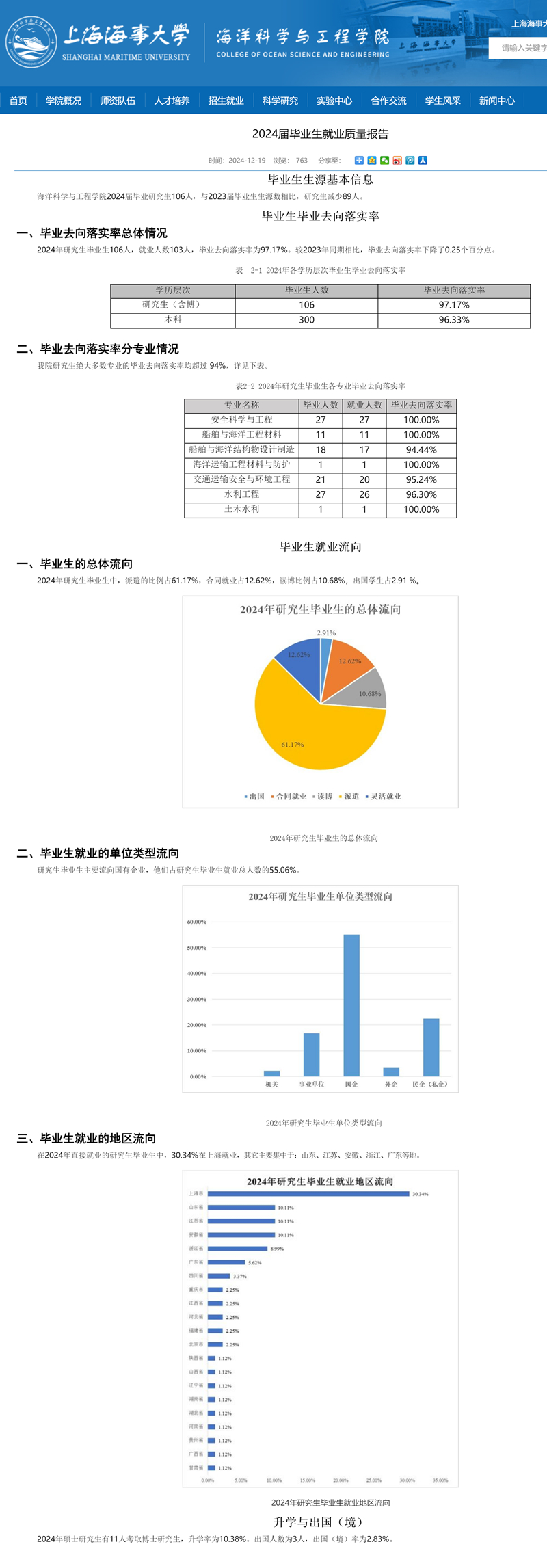 | 上海海事大學(xué)海洋科學(xué)與工程學(xué)院2024屆畢業(yè)生就業(yè)質(zhì)量報(bào)告 |