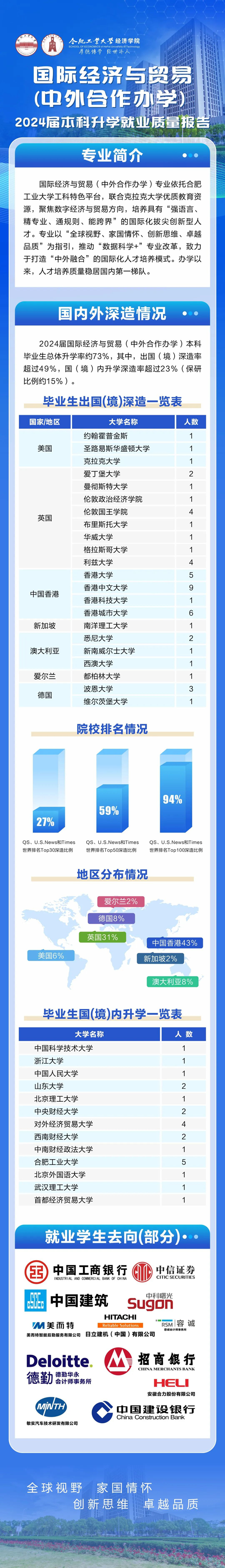 合肥工業大學經濟學院國際經濟與貿易(中外合作辦學)專業2024屆本科升學就業質量報告