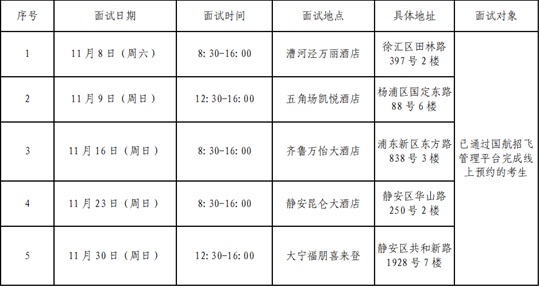 (二)預(yù)選初檢:登錄“國航招飛管理平臺”填寫信息、預(yù)約場次,已預(yù)約考生嚴(yán)格按照預(yù)約時間參加國航招飛辦公室組織的現(xiàn)場初檢面試(含飛行職業(yè)能力傾向測試、英語測試、面試等);