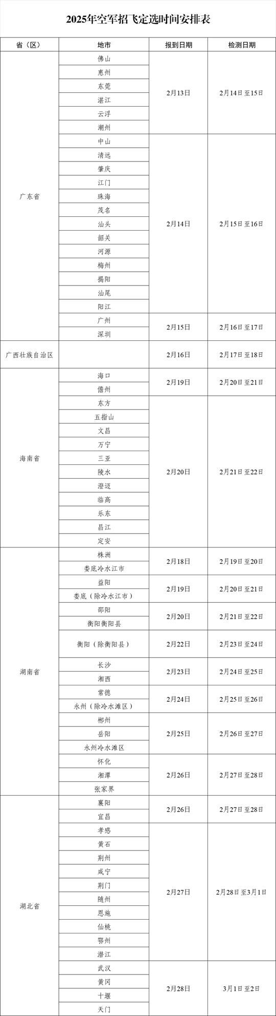 | 2025年中南五省(區)空軍招飛定選檢測通知 |
