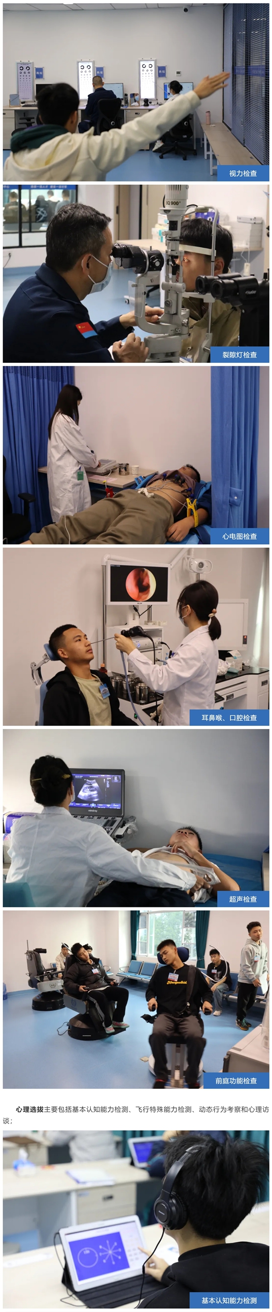 空軍招飛定選主要包括醫學選拔、心理選拔和政治考核。采取單科淘汰制(即有一個項目不合格就終止檢測),全部檢測約需2天半時間。