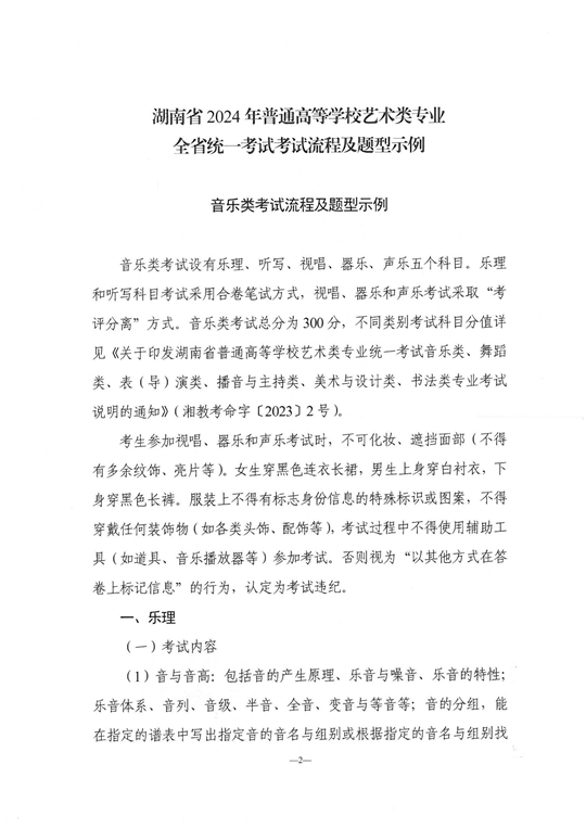 | 關(guān)于印發(fā)湖南省2024年普通高等學(xué)校藝術(shù)類專業(yè)全省統(tǒng)一考試考試流程及題型示例的通知 |