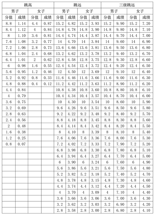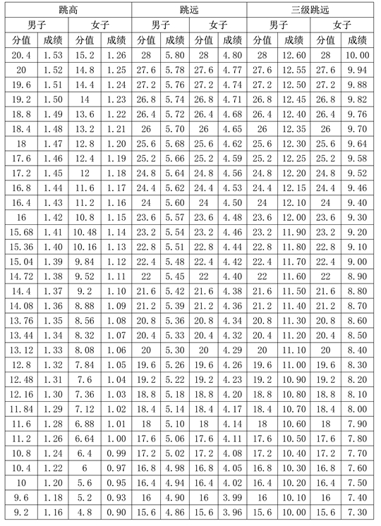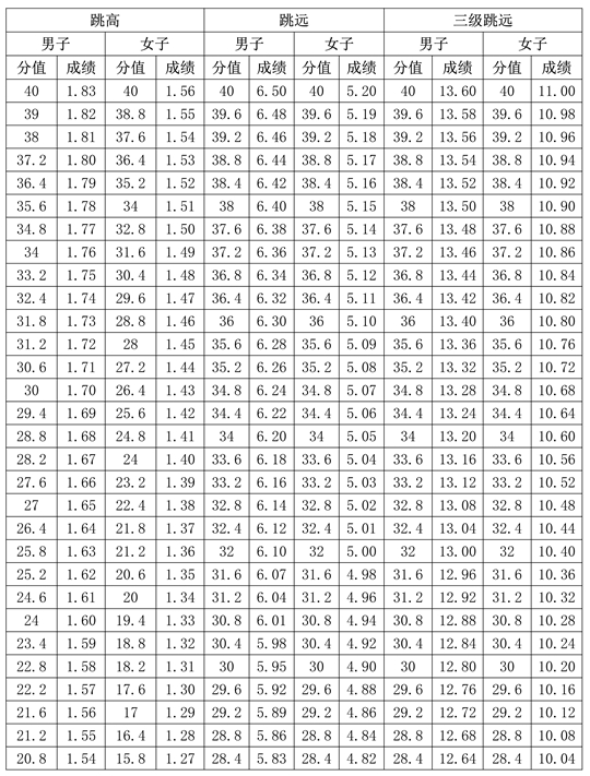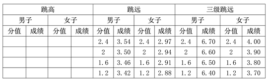3.跳高、跳遠、三級跳遠專項評分表(單位:米)