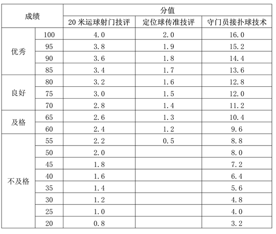 2.20米運球射門技評、定位球傳準技評、守門加試定性評分表
