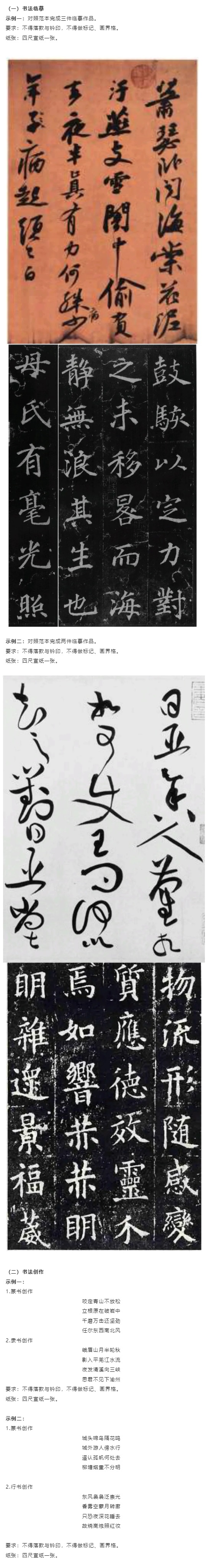 (二)臨摹和創作答卷不得落款與鈐印,不得做標記、畫界格。
