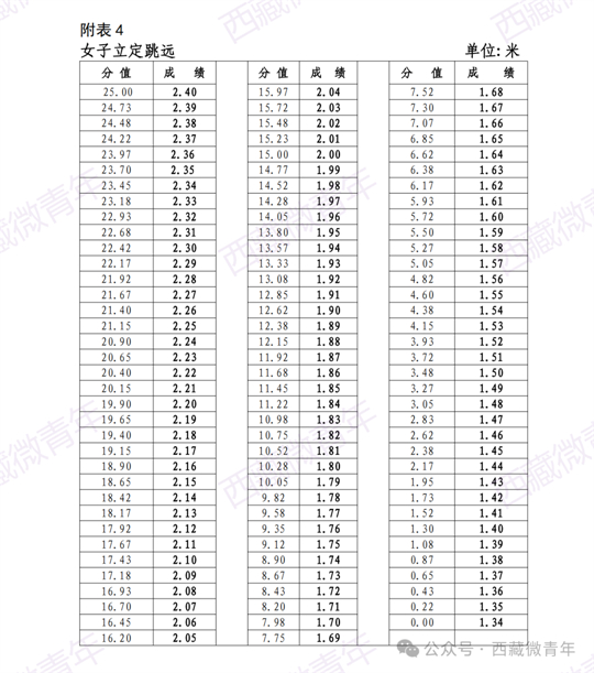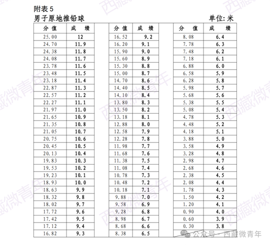 | 西藏2024年普通高考體育統考項目測試方法及評分標準 |
