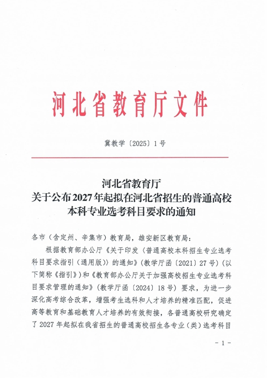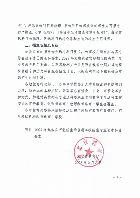 | 關于公布2027年起擬在河北省招生的普通高校本科專業選考科目要求的通知 |