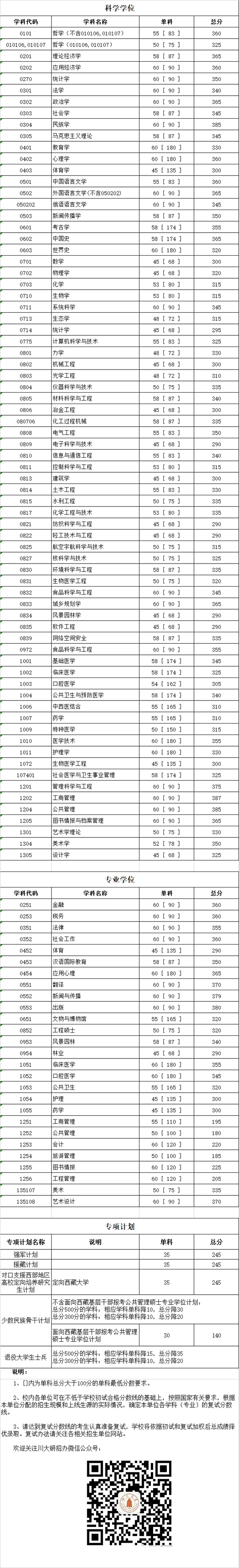 四川大學(xué)2019年碩士研究生入學(xué)考試初試合格分?jǐn)?shù)線