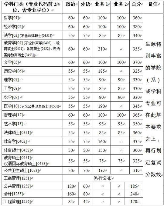 (五)國家少數民族高層次骨干人才培養計劃考生同時滿足以下成績要求的考生可參加復試: