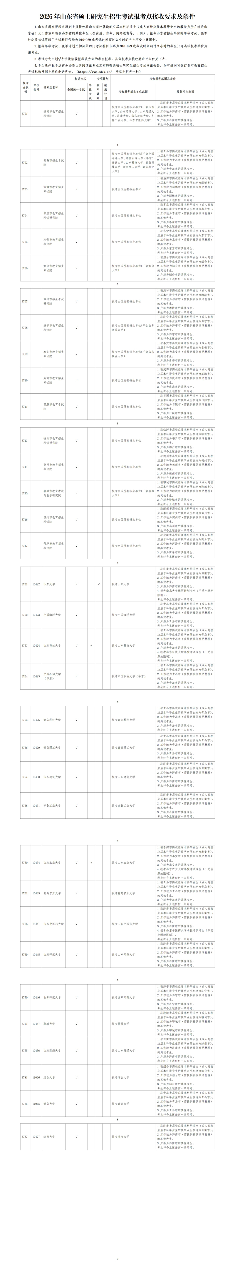 2026年山東省碩士研究生招生考試報考點接收要求及條件