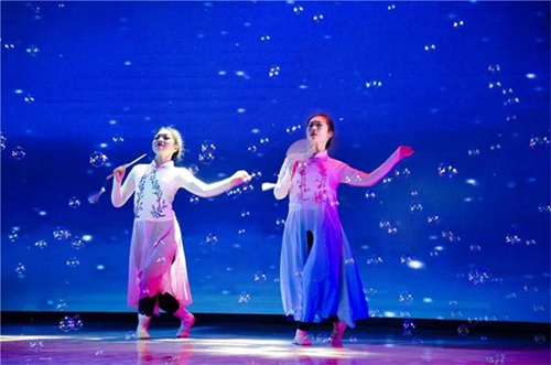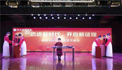隨后,由藝術團街舞隊杜瑩、楊藝璇、李佳穎等同學帶來街舞《chin》,大家揮動雙手、變換腳步,不時騰空躍起;旋轉的飛舞,展示著青春的力量,展示著年輕的思源人在青春的追夢路上從未停歇;校園廣播電視臺同學趙雅、王嘉寧、何卓倫帶來朗誦《永不消逝的聲音》,給現場觀眾展示了那座屬于中國共產黨的第一座廣播電臺——延安新華廣播電臺的成立故事,四位同學堅定有力的聲音不時博得觀眾陣陣掌聲。由郝麗娜老師帶來的歌曲《幸福中國一起走》,動感的音樂節奏,將會場帶入新年的氣氛;由公共藝術教育中心丁挺戰、丁偉老師帶來的二胡鋼琴合奏《二泉映月》 《賽馬》,精湛的表演感染了大家,帶引觀眾時而情緒低沉,時而熱情高亢兩種絕然不同意境,展示了音樂的獨特魅力。