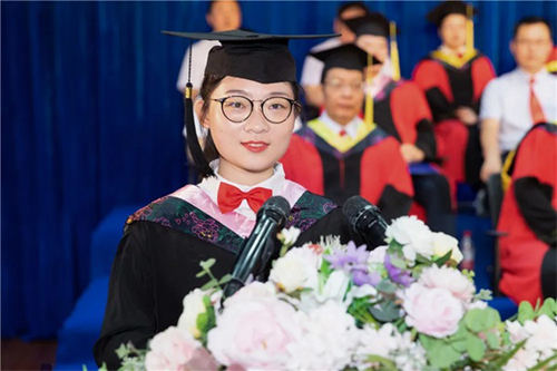 畢業生代表,文學院17級漢語言文學2班虞詩慧同學說:“感謝思源給了我揮斥方遒、散發光芒的舞臺,讓我得到了更好的成長。是你讓我沐浴著清晨的第一縷陽光,伴著瑯瑯讀書聲漫步在思源湖旁;是你讓我在安靜的自習室,暢游在知識的海洋……在這里,實現了我考研的夢想,我們一定會努力奮斗,自強不息,為實現自己的夢想,為實現中華民族的偉大復興貢獻自己的全部力量。”
