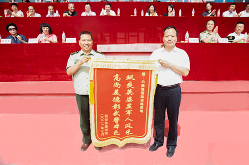 最后,由校黨委書記朱君強為承訓單位贈送了錦旗。在嘹亮激昂的軍歌聲中,本次軍訓總結大會圓滿落下帷幕。