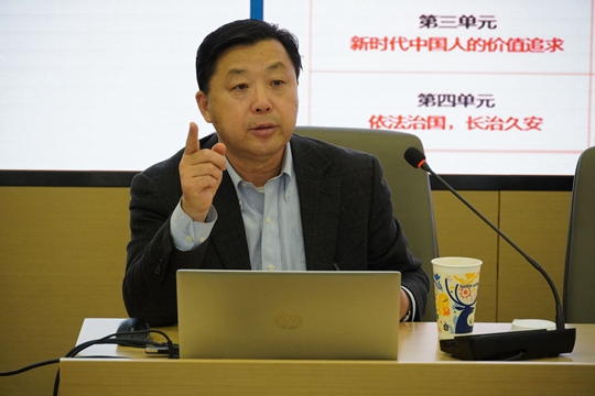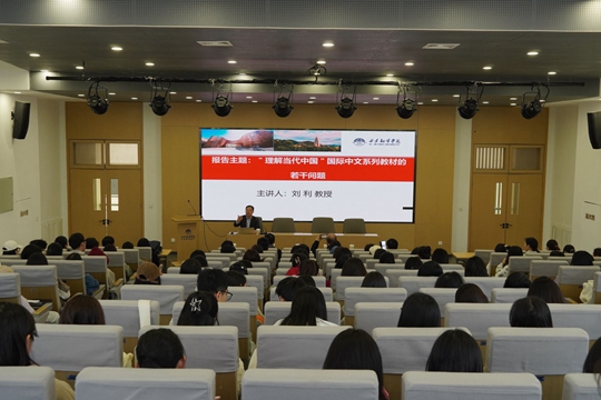 在報告中,劉利教授主要圍繞“探索新路徑”“秉持新理念”“謀劃新設計”“實現(xiàn)新作為”四個主題,向老師和同學們介紹了“理解當代中國”系列教材中的《高級中文聽說教程》和《高級中文讀寫教程》。作為留學生的語言訓練素材,這一系列教材突破了現(xiàn)有教學體系,在“了解當代中國”這一大課題下實現(xiàn)了“中文·國情”的融合。劉利教授指出,系列教材承擔了幫助來華留學生認知當代中國、提升中文水平的雙重任務,因此教材立意既要介紹、闡釋中國,引導學生正確認識中國,也要強化學術中文教學,促進學生中文水平的提高。