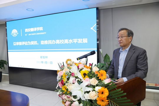 西安翻譯學院執行董事、校長、陜西省教育考試與評價研究會民辦教育分會會長崔智林致辭并作報告