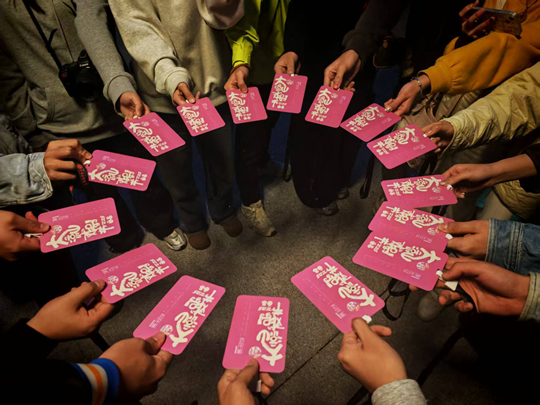 11月8日清晨4點,《筆尖·心跳》劇組17人在制作人、藝術教育中心主任鋰洋,編劇、導演、音樂劇產業學院主管李文霖等,執行導演、藝術教育中心教師趙彤彤等的帶領下踏上第七屆大涼山國際戲劇節征程,師生們轉乘三種交通工具,傍晚抵達聽濤谷。稍作休整后,劇組人員便前往劇場考察。次日晚21:00,上一劇組演出結束,他們迅速投入裝臺合光。由大劇場變為小劇場沉浸式演繹,需修改演員調度,團隊頂著壓力工作至凌晨2:30,確保每個細節完美。