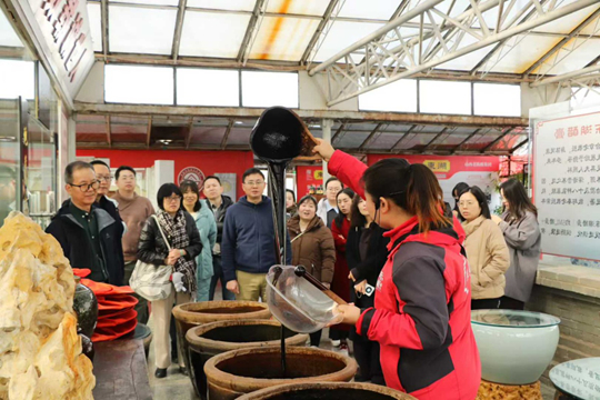 山西醋博園是一個集醋文化展示、生產工藝體驗和科研創新于一體的綜合性園區。在參觀過程中,三校四區一行人深入了解了醋博園的完整生產流程及豐富的文化展覽區域。從最初嚴格精細的原料篩選,到傳統與現代工藝結合的發酵陳釀過程,再到高效衛生的自動化成品包裝環節,每一道工序都充分彰顯了企業在質量控制上的嚴謹態度、對傳統釀造技藝的匠心傳承,以及不斷推動技術升級與創新的企業精神。