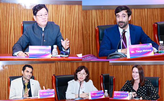 三位嘉賓高瞻遠矚的主旨發言,給此次國際論壇指明了方向。在圓桌論壇環節,五位來自政府、產業與學界的嘉賓從各自領域的實踐經歷出發,繼續在如何落實全球勝任力應用型人才培養具體做法上展開熱烈討論。廣州市人民政府外事辦公室原主任劉保春博士指出:在不確定時代,唯“準備”是硬道理,他強調,在當今AI帶來的世紀變革中,學生應持續學習,從“學習者”轉變為“技能擁有者”;JOINCO公司中國區負責人Tiago Mateus先生通過AI對零售業企業轉型案例,展示了人工智能重塑全球零售業態的效能,期望未來能夠涌現出更多的人才借助AI為零售行業開創未來。國際商學院副教授Ahsan Akbar博士指出,應對全球商業格局的變革,我們應重新審視傳統教學模式,要在課程中融入更多的跨文化適應與領導力的訓練,以提升學生職場適應力。外國語學院副院長喬世燕副教授指出,人才培養應聚焦商務英語的專業性,推動“英語+商務”深度融合,培養出能夠勝任跨文化商務交流的復合型人才。外國語學院教師Stacy Lynn Greer女士強調在AI快速發展的背景下,應重視自主學習、跨情境問題解決及跨文化團隊協作等人類核心能力。