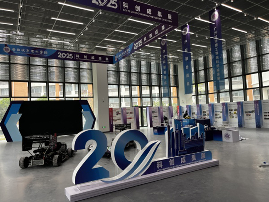 與此同時,新建成的科創中心之科創成果展廳,則展現了學校育人的另一重維度。這里不是靜態的陳列館,而是通過動態更新的展陳機制,全天候展示著師生最新、最前沿的探索。這里不僅是成果的陳列窗,更是思想碰撞、學科交融的平臺,詮釋著應用型人才培養的深刻內涵。