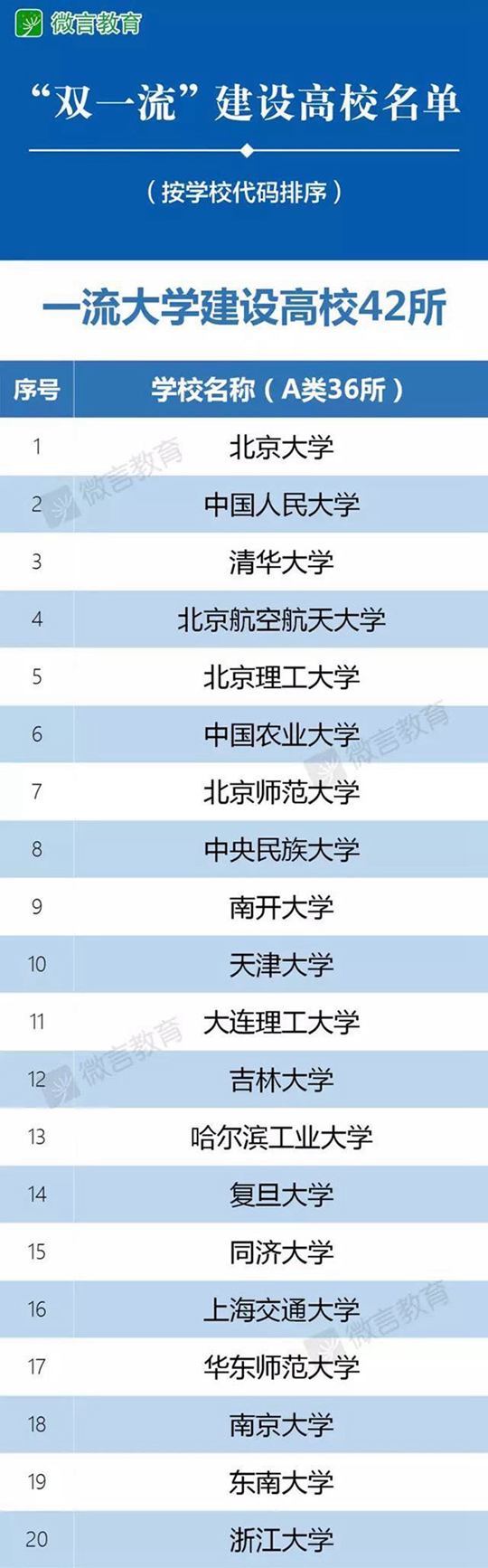 | 三部委權威發布:“雙一流”建設高校及建設學科名單公布 |