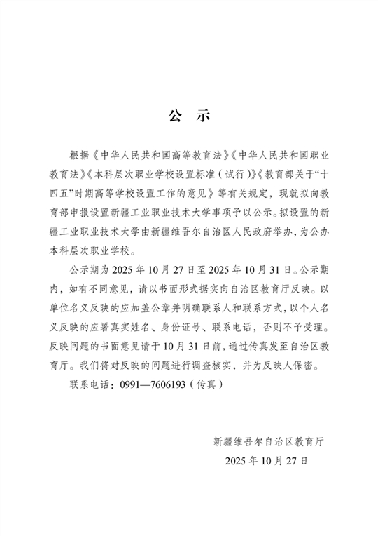 新疆擬設置新疆工業(yè)職業(yè)技術大學
