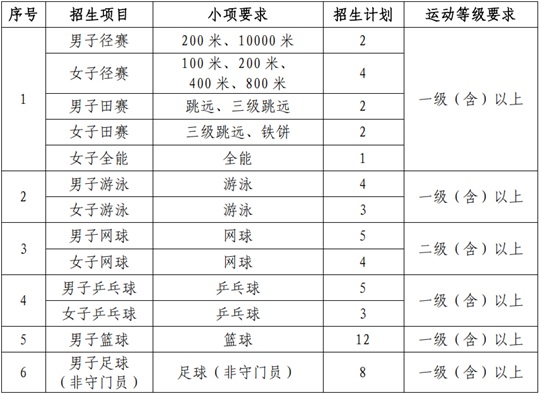 6.通過運動訓練專業招生錄取的考生入校后不得轉入其他專業學習。
