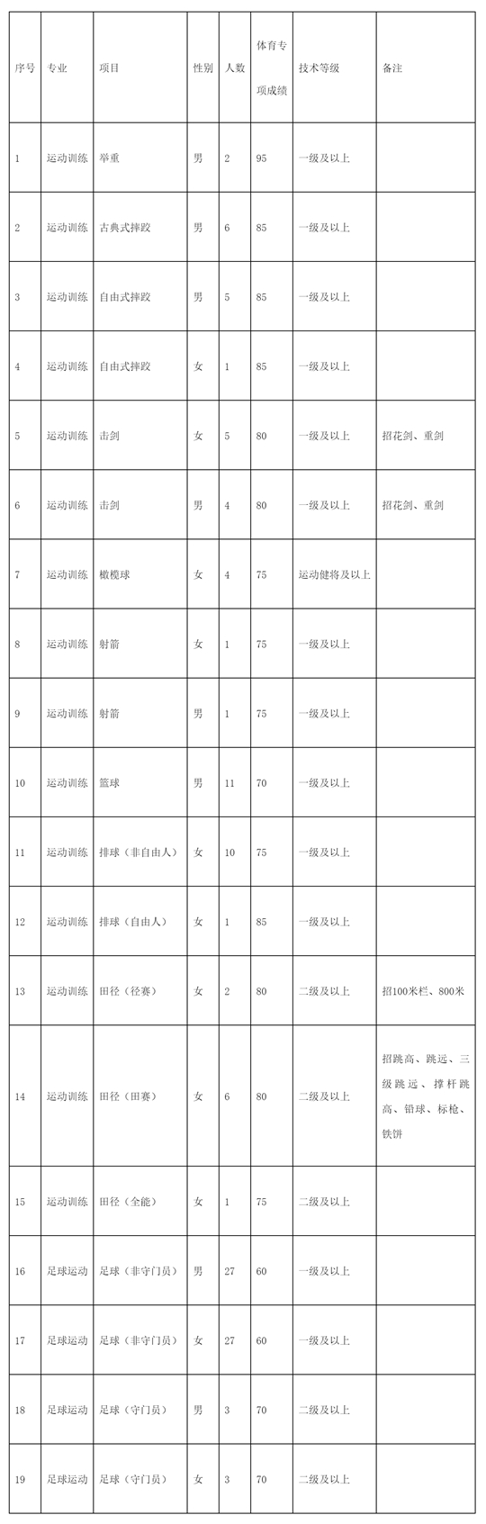 2.具備我校招生項(xiàng)目要求的運(yùn)動(dòng)員技術(shù)等級(jí)稱號(hào);