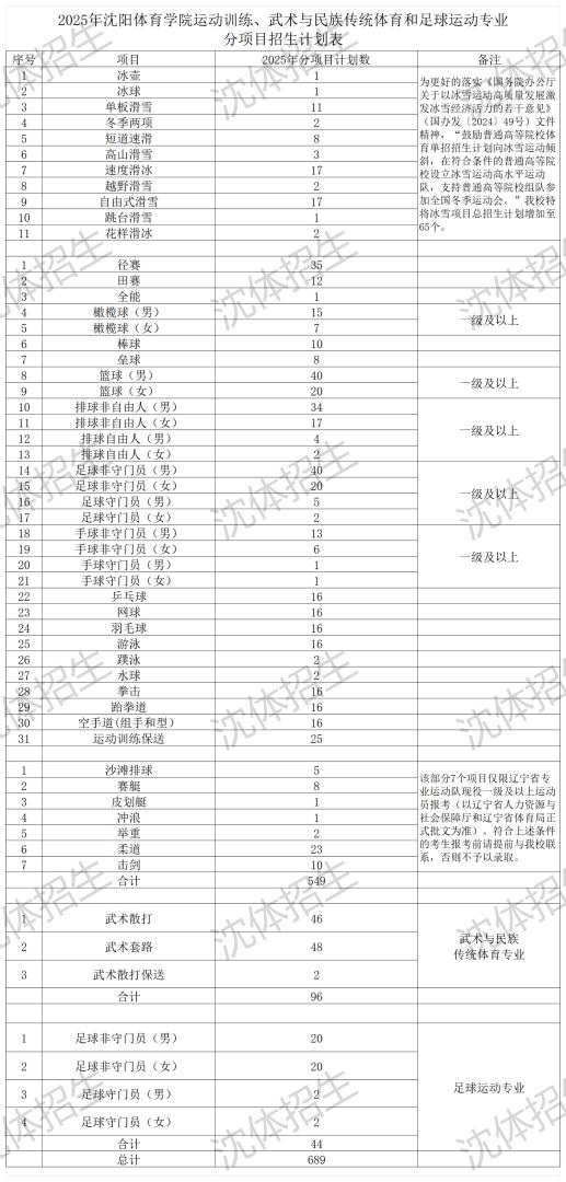 2025年沈陽(yáng)體育學(xué)院體育單招專業(yè)分項(xiàng)目招生計(jì)劃表
