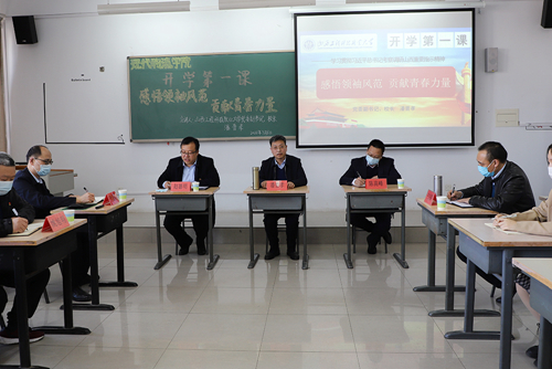 3月8日下午,山西工程科技職業(yè)大學校長潘晉孝以《感悟領袖風范 貢獻青春力量》為題,在3號教學樓509教室為現(xiàn)代物流學院學生代表講授了一堂內涵豐富、立意深遠的“開學第一課”;顒佑涩F(xiàn)代物流學院黨委負責人趙德明主持。