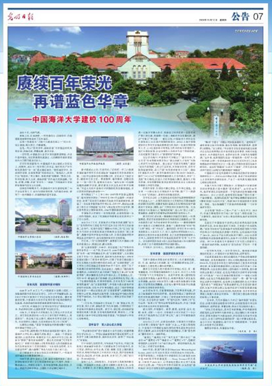 | 【光明日報】賡續(xù)百年榮光再譜藍色華章——中國海洋大學(xué)建校100周年 |