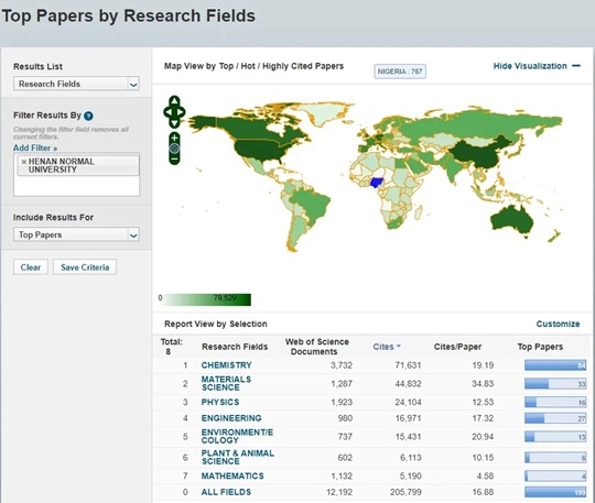 河南師范大學位居中國內地高校第129位、河南省高校第3位。本期河南師范大學共有ESI論文12192篇,總被引205799次,篇均被引16.88次,高被引數論文198篇。河南師范大學化學、材料科學、物理學、工程學、環境/生態學、植物與動物科學、數學7個學科進入ESI學科前1%。