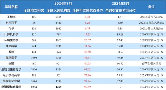 上海大學(xué)ESI全球前1%學(xué)科排名百分位