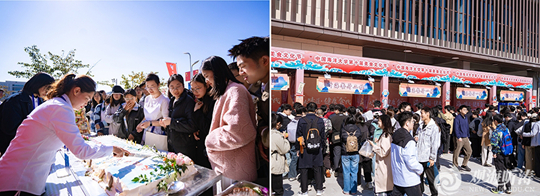 同期舉辦的“你點我檢・食安溯源”校園食品原材料展示、“尋味海大”打卡集章活動也吸引了很多師生駐足參與。嶗山校區主會場除美食攤位外,還設有助農產品、海大智造產品、教育超市促銷商品等攤位,以及飲食知識趣味問答、DIY美食課堂、闖關互動等體驗活動專區,為師生打造了集“知識學習、公益參與、動手實踐、趣味互動” 于一體的校園文化盛宴。