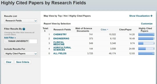 截至目前,延安大學一共有4個學科進入ESI前1%,分別是工程學、臨床醫學、化學、農業科學。