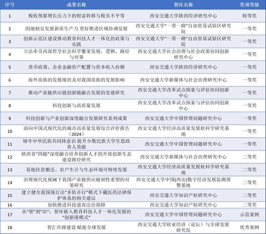 西安交大獲獎名單(備注:另有兩項非公開成果分別獲得一等獎、二等獎)