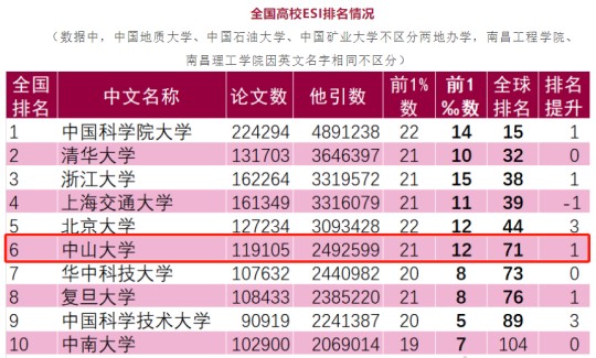 | 中山大學(xué)ESI排名全球前1‰學(xué)科再+1︱穩(wěn)居國(guó)內(nèi)第6位! |