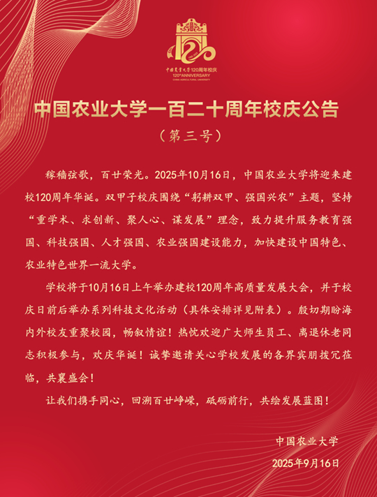 中國農業大學一百二十周年校慶公告(第三號)