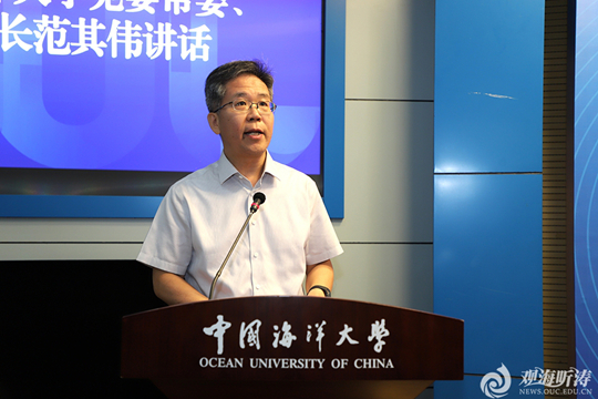 9月22日上午,中國海洋大學崇本學院2025級藍夢拔尖人才實驗班開學典禮在嶗山校區行知樓報告廳舉行。副校長范其偉出席典禮。