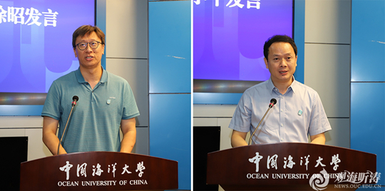班級導師代表徐昭、學業導師代表唐小千先后發言。徐昭表示將陪伴新生適應校園生活,做同學們的“貼心人”。唐小千鼓勵新生夯實數理基礎,主動參與科研項目,以嚴謹態度叩響海洋科學的大門。