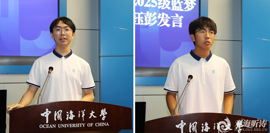 高年級學生代表、崇本學院2023級魏子泰分享成長經驗,建議新生打牢基礎,積極開展科研訓練,拓寬國際視野,勇敢探索未知。新生代表、2025級藍夢拔尖人才實驗班曹鈺彭表達了對未來的期待,希望能在崇本大家庭里,以夢為馬,不負韶華,努力成長為胸懷藍色夢想、堪當時代重任的優秀海洋人才。