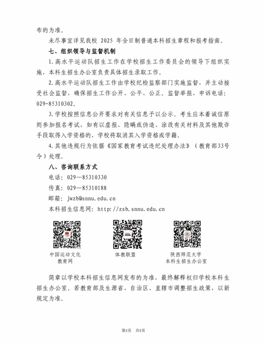 陜西師范大學(xué)2025年高水平運動隊招生簡章