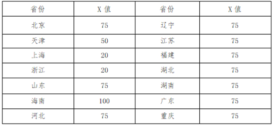 (2)對(duì)于北京、天津、上海、浙江、山東、海南、河北、遼寧、江蘇、福建、湖北、湖南、廣東、重慶等十四個(gè)高考綜合改革省份的考生,高考投檔成績(jī)須達(dá)到生源地省份確定的高水平藝術(shù)團(tuán)相關(guān)最低錄取控制參考分?jǐn)?shù)線上X分及以上(各省份X值詳見下表),經(jīng)生源地省份省級(jí)招生考試機(jī)構(gòu)審批同意,我校予以錄取,并滿足考生填報(bào)的前三個(gè)專業(yè)志愿之一(考生不得重復(fù)填報(bào)同一專業(yè))。