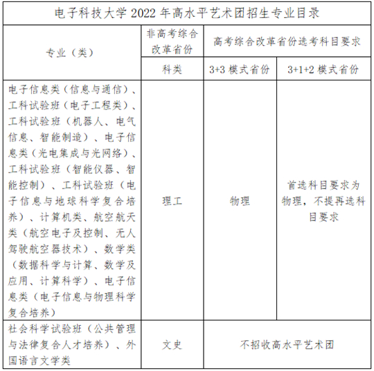| 電子科技大學(xué)2022年高水平藝術(shù)團(tuán)招生簡(jiǎn)章 |