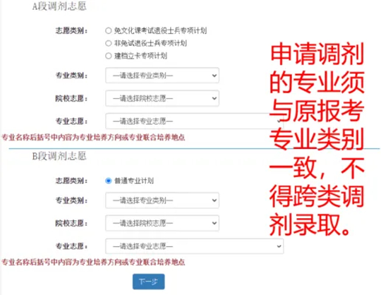 4. 填報調劑志愿時,填報的專業類別要與自己一志愿報考的專業類別一致,不能跨專業類別填報調劑志愿。例如:普通文科不能填報藝術類專業,藝術類也不能填報普通文科專業。