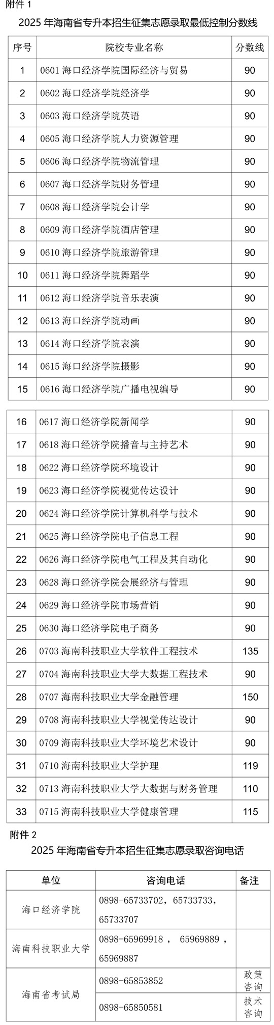 2.2025年海南省專升本招生征集志愿錄取咨詢電話