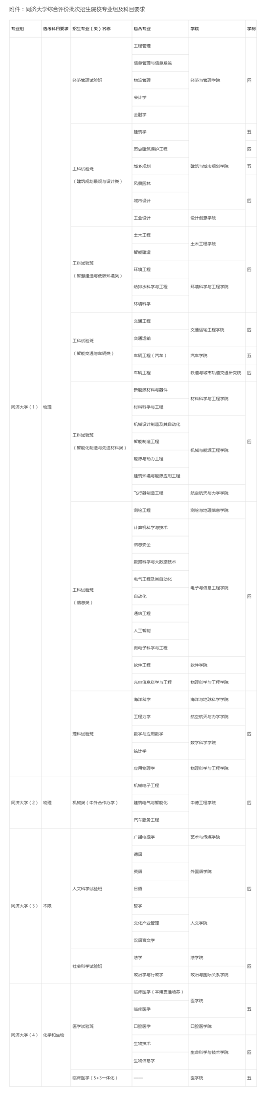 附件:同濟大學(xué)綜合評價批次招生院校專業(yè)組及科目要求